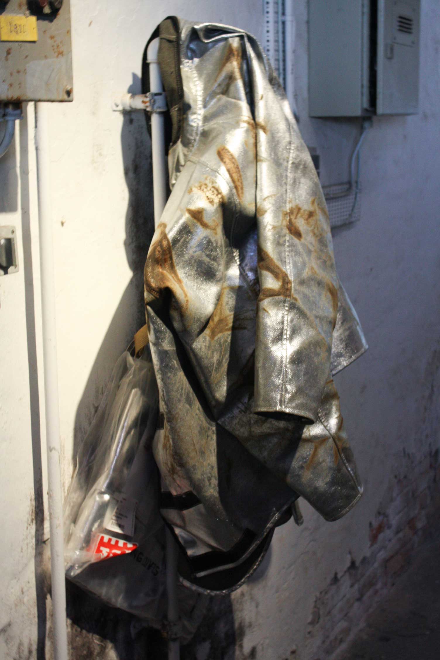 Eyes follow glob of molten glass on blowpipe tip leave heated hell to journey into wooden mold on floor. Glob is inflated slightly as other tip is kissed by blow. A gesture from one blower triggers the next to release a tiny transparent miracle. Glass is drawn through air, breathing only because of skilled hands. Until next step. Time is a savage term, fluid in this sandbox.